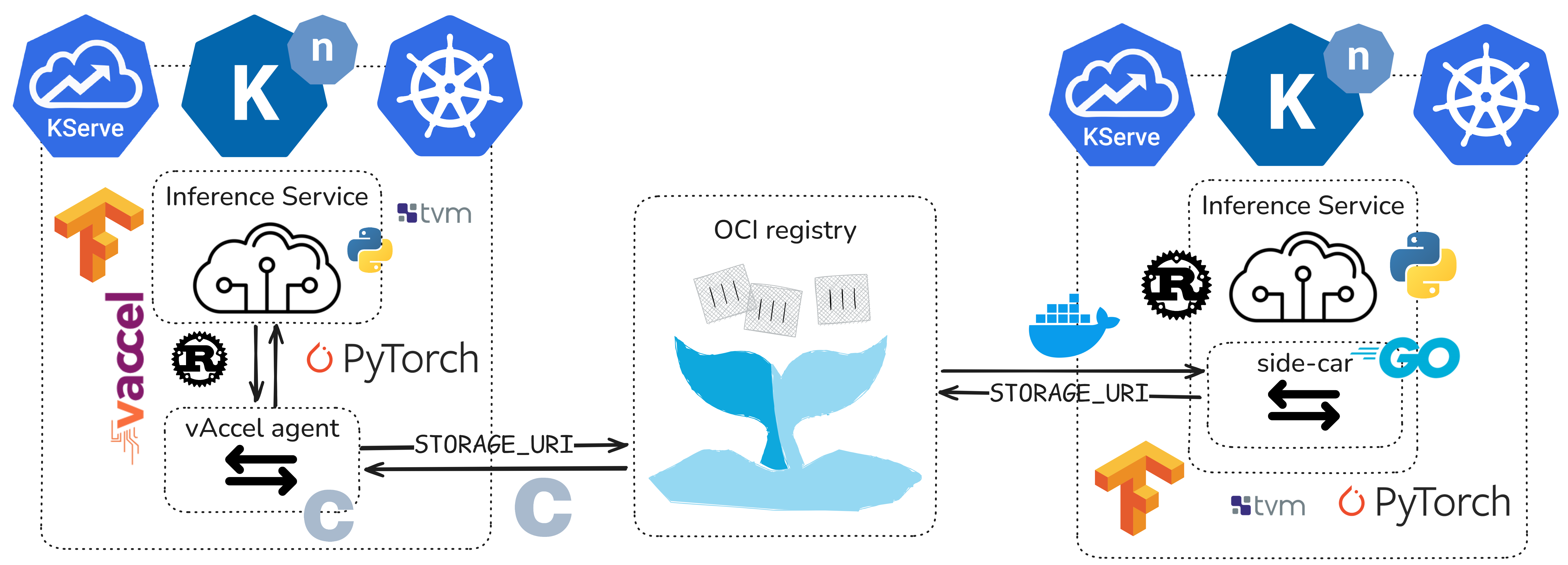 that use vAccel. Thus, instead of relying on KServe’s STORAGE_URI and