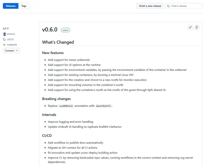 This release adds support for WASM Mewz unikernels, and significantly, for single-app, Linux-based containers by transforming them into minimal Linux VMs. You can now: